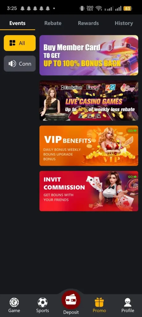 You can claim daily login bonuses, referral rewards, and deposit offers.